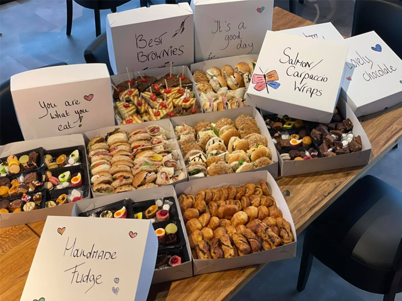 Wij bezorgen heerlijke lunches en andere feestelijke caterings opties, gewoon bij u thuis. De heerlijke lekkernijen, gemaakt door onze kanjers, bezorgen u een lach op uw gezicht!